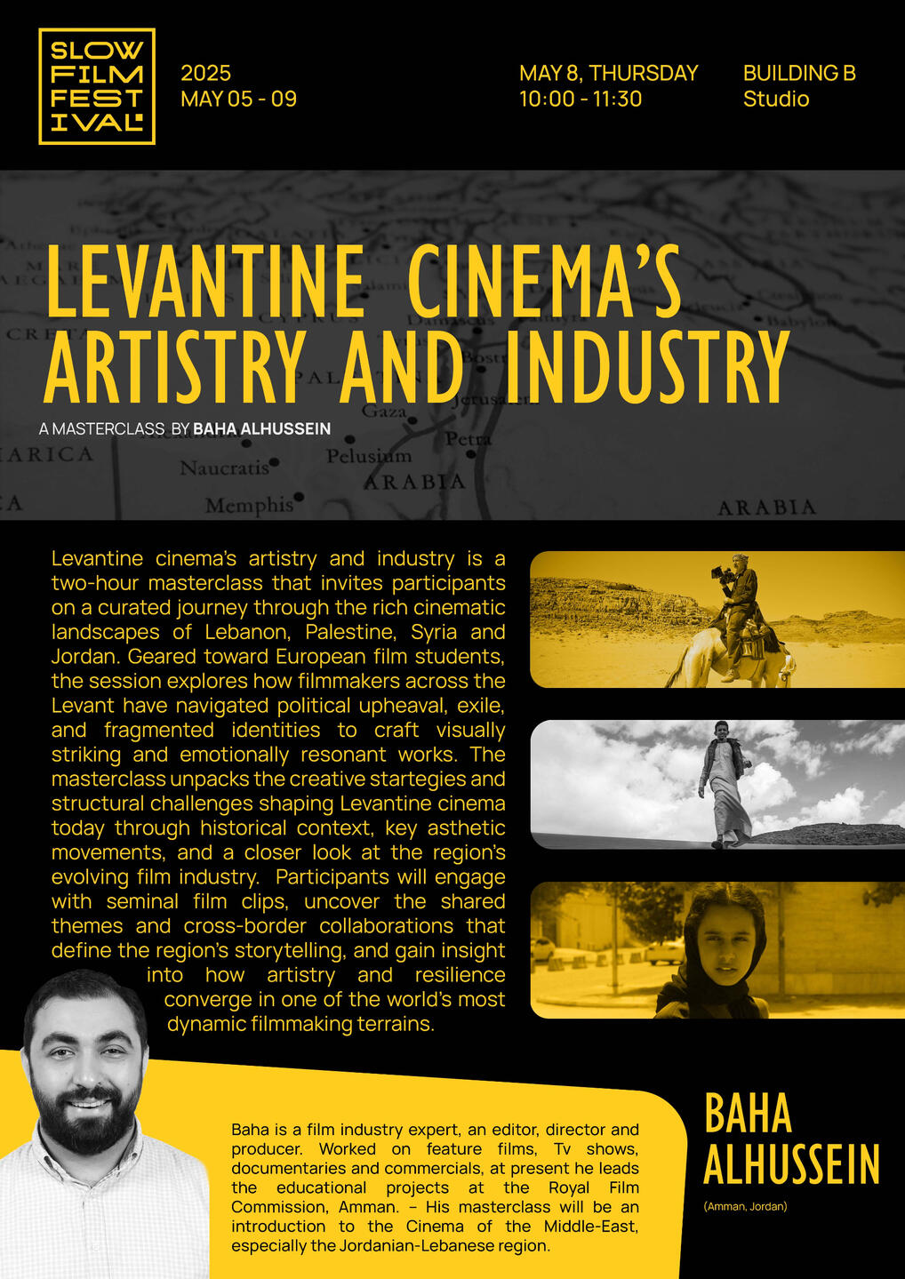 10.00-11.30 — LEVANTINE CINEMA’S ARTISTRY AND INDUSTRY – Masterclass by Baha Alhussein (Royal Film Commission, Jordan). Venue: Studio Room, Building B (In English – limited places, registration recommended).